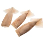 Tubos de pota limpios sin piel dispuestos en bloque interfoliado.